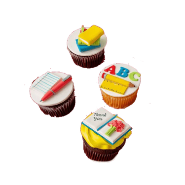 Each box includes four premium cupcakes, made with moist sponge and topped with creamy, rich frosting. To make it even more special, every cupcake comes with a teacher-themed topper, adding a playful and heartfelt touch. In addition to looking fantastic, they taste amazing too.