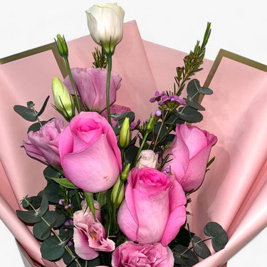 A vibrant burst of sunshine, this bouquet combines 20 cheerful yellow roses with fresh eucalyptus for a refreshing, aromatic blend. Perfect for birthdays, thank-yous, or bringing warmth to any space in Dubai. Hand-tied with black wrapping.